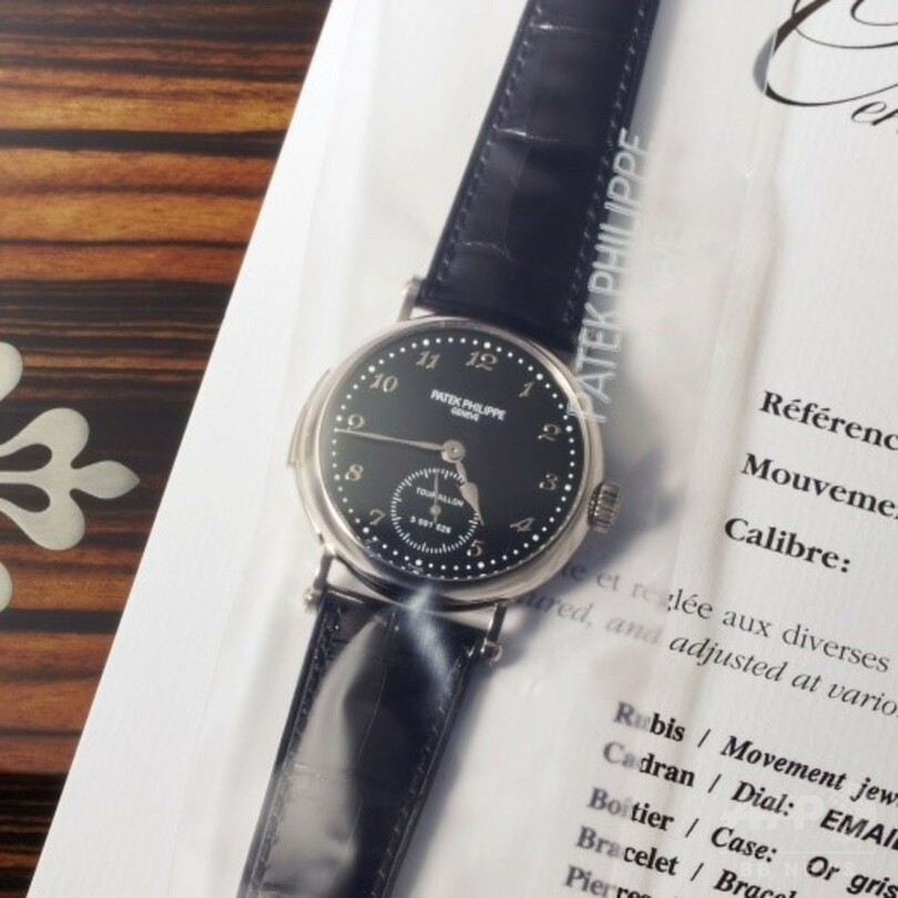 同オークションでの予想落札価格の最高値は、約3100~4140万円と予想される「パテック フィリップ」のグランド・コンプリケーション「Ref.5539」。これは18カラットホワイトゴールド製で、ブラックエナメルの文字盤のトゥールビヨンミニッツリピーターだ。ケースバックは、サファイアクリスタル製のものと、ソリッドゴールドのものが付属している。ミニッツリピーターはスライドピースで起動される。このアイテムは2014年5月に最初に購入されたもので、当時の価格は約4660万円だった。