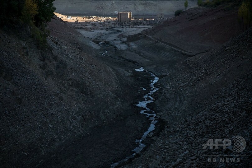 【10月11日 AFP】スペイン北部ラ・リオハ(La Rioja)州で雨不足のため貯水池が干上がり、かつて池の底に沈められた昔の村が再び姿を現している。