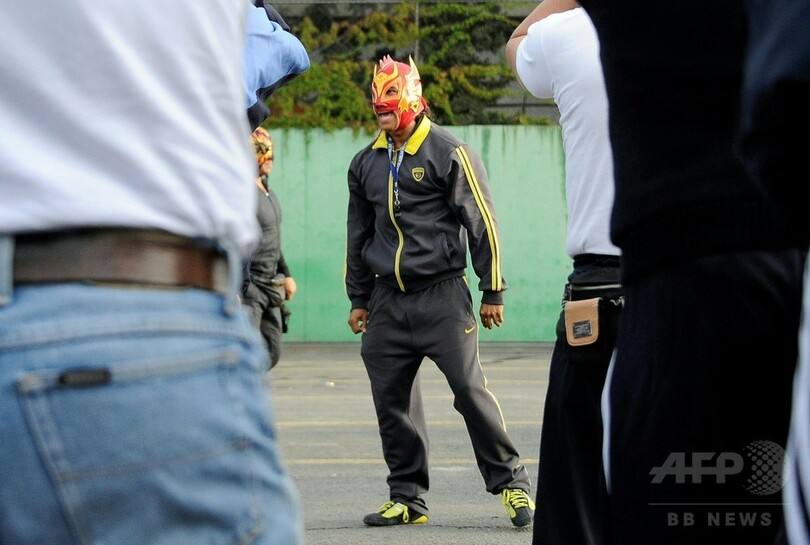 【10月13日 AFP】メキシコの首都メキシコ市(Mexico City)のイスタパラパ(Iztapalapa)地区で6日、覆面プロレスラーが警察官たちに容疑者の逮捕訓練を行った。イスタパラパはメキシコ国内でも有数の犯罪多発地域。レスラーたちは警察部隊の380人に、銃器を使用せずに容疑者を拘束する術を「プロレス式」で伝授していた。(c)AFP