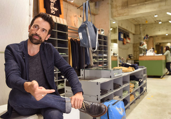合成繊維を一切使用しないオーガニックなアパレルラインは、2014年から始まった「フライターグ」の新たな挑戦だ。「たとえばこの生地、一見コットンだけれど実はヨーロッパ産のヘンプやリネンから作られている。実はこの繊維を自社開発するのに5年もかかったんだよ」と、マーカスが見せたのはデニム風のジャケット。「F-ABRIC」と呼ばれる特別な繊維を使った製品で、土に還る究極の新素材は、有害な残留物を大地に残さない。「今はそのコンセプトをまず人々に説明しているところ。20年前にバッグについて理解してもらうように努めたのと同じようにね」