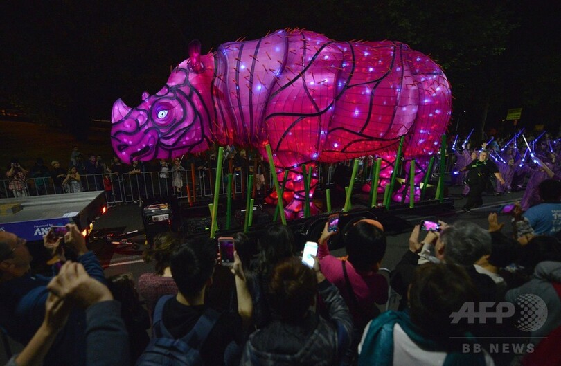 【10月18日 AFP】オーストラリア・シドニー(Sydney)で15日、タロンガ動物園(Taronga Zoo)の開園100周年を記念するパレードが開催された。同市中心部を練り歩くパレードでは、動物の保護における同園の功績をたたえ、アジアゾウなど絶滅が危惧される10種の動物をかたどった巨大なオブジェが登場した。(c)AFP