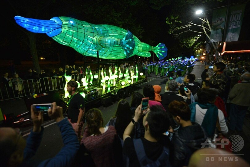【10月18日 AFP】オーストラリア・シドニー(Sydney)で15日、タロンガ動物園(Taronga Zoo)の開園100周年を記念するパレードが開催された。同市中心部を練り歩くパレードでは、動物の保護における同園の功績をたたえ、アジアゾウなど絶滅が危惧される10種の動物をかたどった巨大なオブジェが登場した。(c)AFP