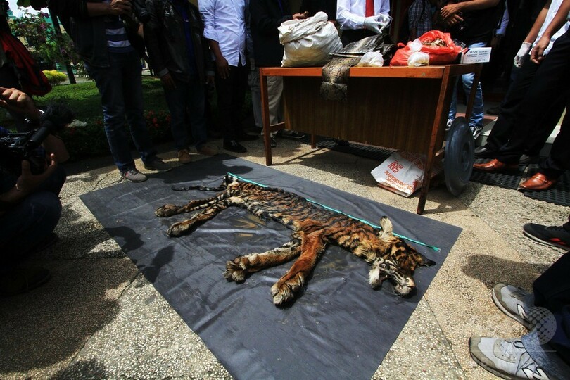 男の一人はバイヤーを装った捜査員に、トラの毛皮を7000万ルピア(約56万円)で売買する取引に応じたという。