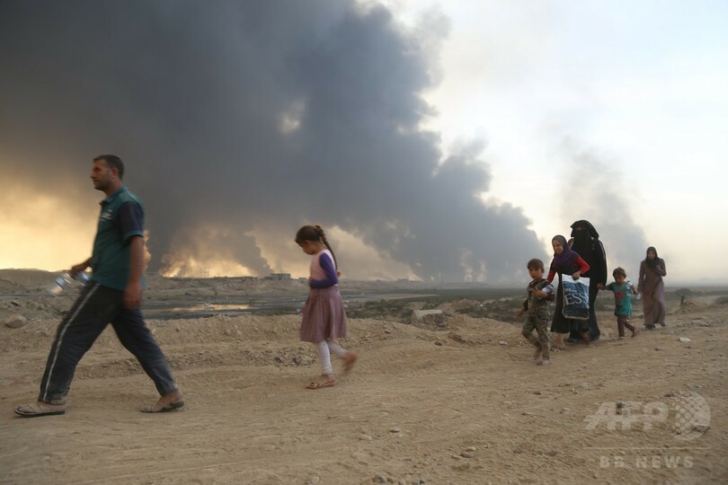 【10月19日 AFP】米国防総省のジェフ・デービス(Jeff Davis)報道官は18日、イラク軍などがイスラム過激派組織「イスラム国(IS)」からの奪還作戦を展開している同国北部モスル(Mosul)で、ISが一般市民の避難を阻止し、「人間の盾」として利用していると指摘した。