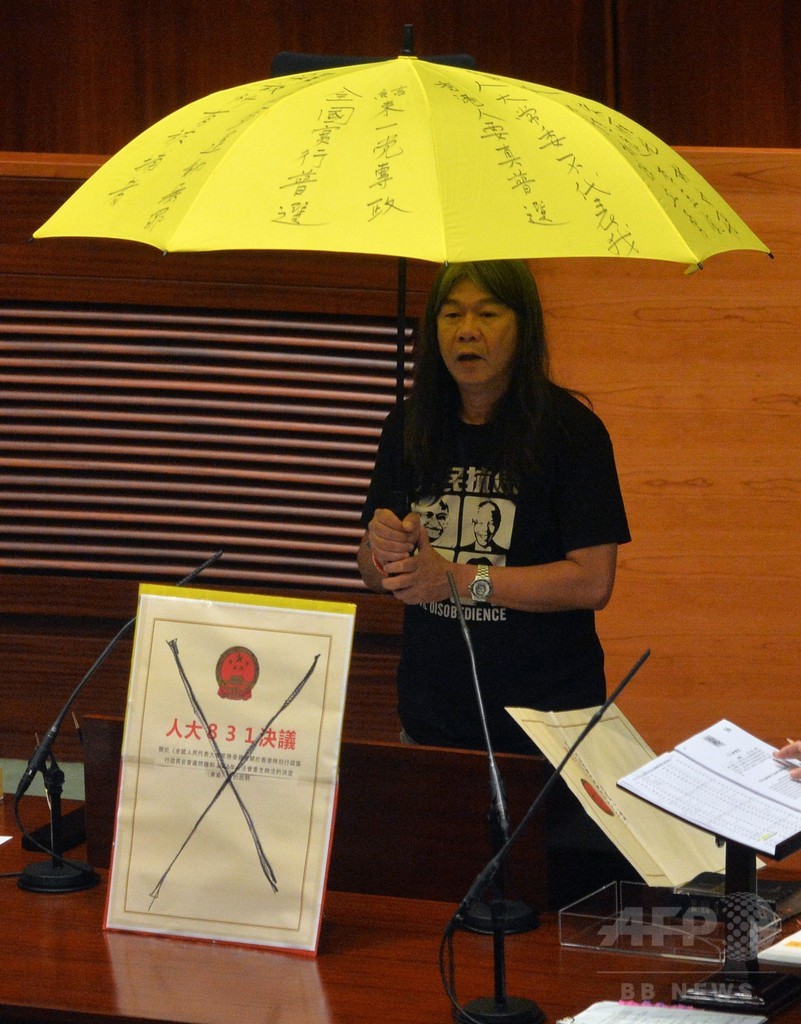 【10月19日 AFP】香港立法会(議会)で19日、中国からの独立を支持する若手議員2人の就任宣誓を親中派議員が阻止した。