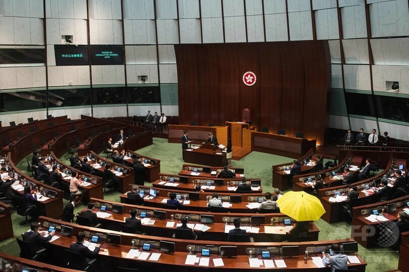 【10月19日 AFP】香港立法会(議会)で19日、中国からの独立を支持する若手議員2人の就任宣誓を親中派議員が阻止した。