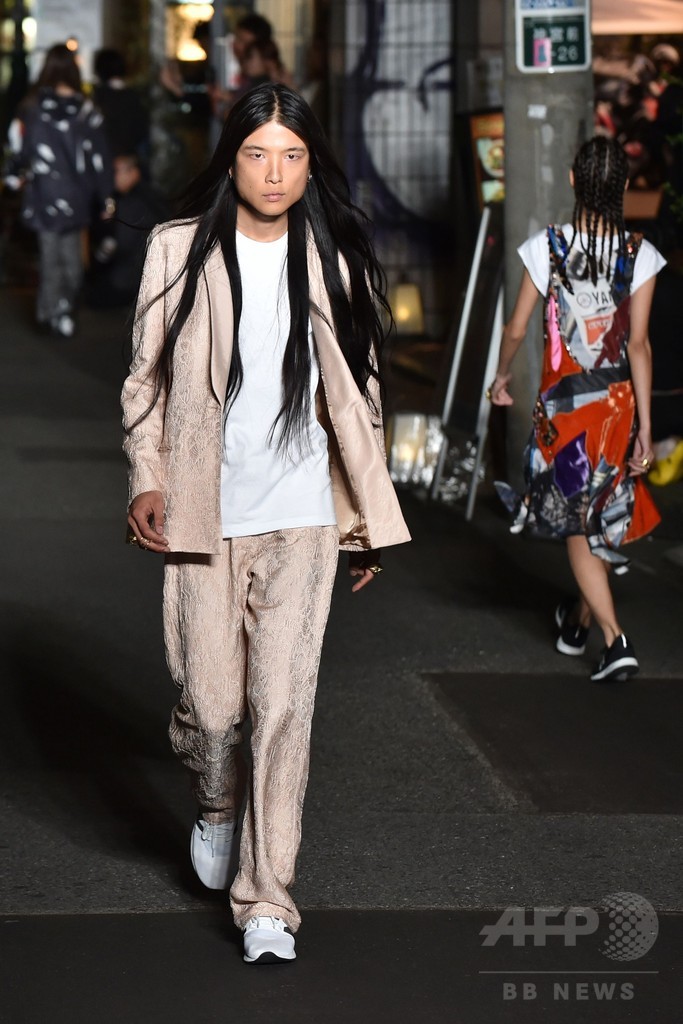 【10月20日 AFP】フランス発ファッションブランド「コシェ(KOCHÉ)」が19日、「コシェ バイ エイチ ビューティ & ユース(KOCHÉ Presented by H BEAUTY&YOUTH)」として「アマゾン ファッション ウィーク 東京(Amazon Fashion Week TOKYO)」で17年春夏コレクションを発表した。会場となったのは、東京のユースカルチャーの中心地である原宿の路上。フレンチツイストを効かせたクールなストリートスタイルで、繁華街の一角をランウェイに変身させた。