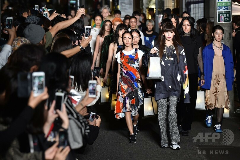 【10月20日 AFP】フランス発ファッションブランド「コシェ(KOCHÉ)」が19日、「コシェ バイ エイチ ビューティ & ユース(KOCHÉ Presented by H BEAUTY&YOUTH)」として「アマゾン ファッション ウィーク 東京(Amazon Fashion Week TOKYO)」で17年春夏コレクションを発表した。会場となったのは、東京のユースカルチャーの中心地である原宿の路上。フレンチツイストを効かせたクールなストリートスタイルで、繁華街の一角をランウェイに変身させた。