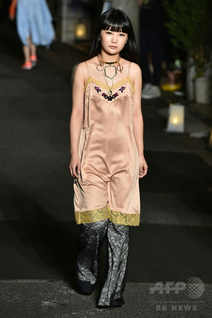 東京でのショーではネットレギンスやレースのジョギングパンツ、バイアスカットのパッチワークドレスなどユニセックスなルックを披露。繊細なネグリジェ風のスリップドレスや、スパンコールやフェザーのディテールなどもメンズとウィメンズの両方に採用された。