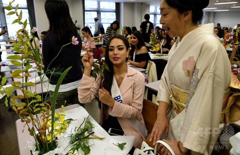 【10月21日 AFP】「ミス・インターナショナル・ビューティ・ページェント2016(Miss International Beauty Pageant 2016)」の各国代表らが21日、都内の華道家元・池坊(Ikenobo)東京会館で、いけばなを体験した。