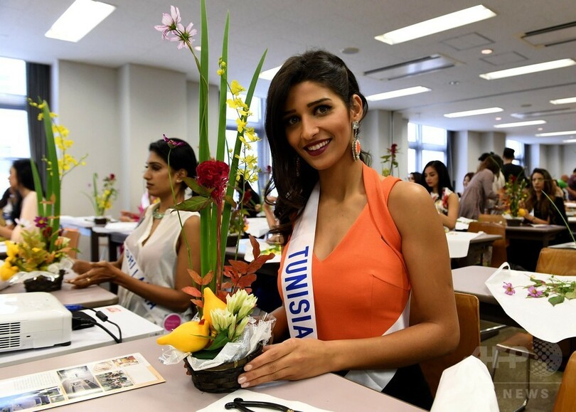 【10月21日 AFP】「ミス・インターナショナル・ビューティ・ページェント2016(Miss International Beauty Pageant 2016)」の各国代表らが21日、都内の華道家元・池坊(Ikenobo)東京会館で、いけばなを体験した。