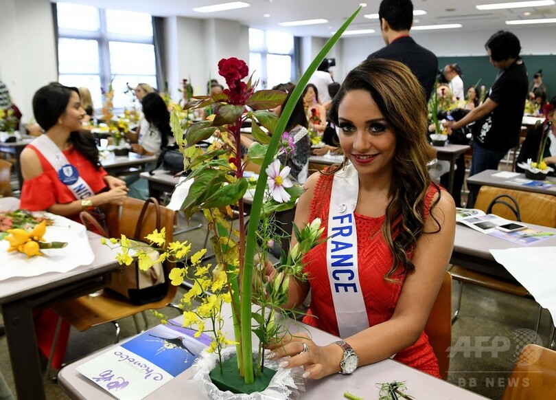 【10月21日 AFP】「ミス・インターナショナル・ビューティ・ページェント2016(Miss International Beauty Pageant 2016)」の各国代表らが21日、都内の華道家元・池坊(Ikenobo)東京会館で、いけばなを体験した。