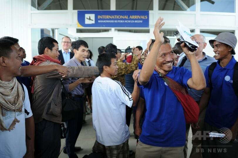 【10月23日 AFP】(更新、写真追加)ソマリアの海賊が漁船を乗っ取り、同国の海賊による人質事件としては2番目の長さとなる5年近くもの間、乗組員らを拘束していた事件で、人質となっていたアジア人乗組員26人が解放され、23日にケニアに到着した。