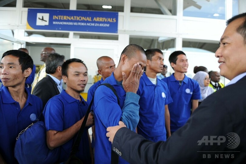 【10月23日 AFP】(更新、写真追加)ソマリアの海賊が漁船を乗っ取り、同国の海賊による人質事件としては2番目の長さとなる5年近くもの間、乗組員らを拘束していた事件で、人質となっていたアジア人乗組員26人が解放され、23日にケニアに到着した。
