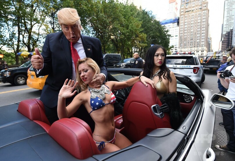 ビキニ姿のモデルがトランプ氏に抗議? 米NYにそっくりさん