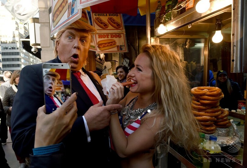 ビキニ姿のモデルがトランプ氏に抗議? 米NYにそっくりさん