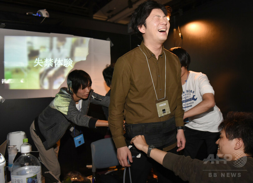 なかでも注目を集めたのは、電気通信大学(The University of Electro-Communications)による「失禁体験装置」。腹部に圧迫感、股間部に温感や振動などを伝え、尿意と排尿感を疑似体験させる仕組みだ。同大3年生の亀岡嵩幸(Takayuki Kameoka)さんは「尿意を感じることが難しい高齢者や術後の方のトレーニングに役立つようウェアラブル化を目指しています」と意欲を見せた。体験した横浜市の50代男性は「リアルに気持ち悪かった。そういえばおもらしってこんな感じだったかな」と語った。
