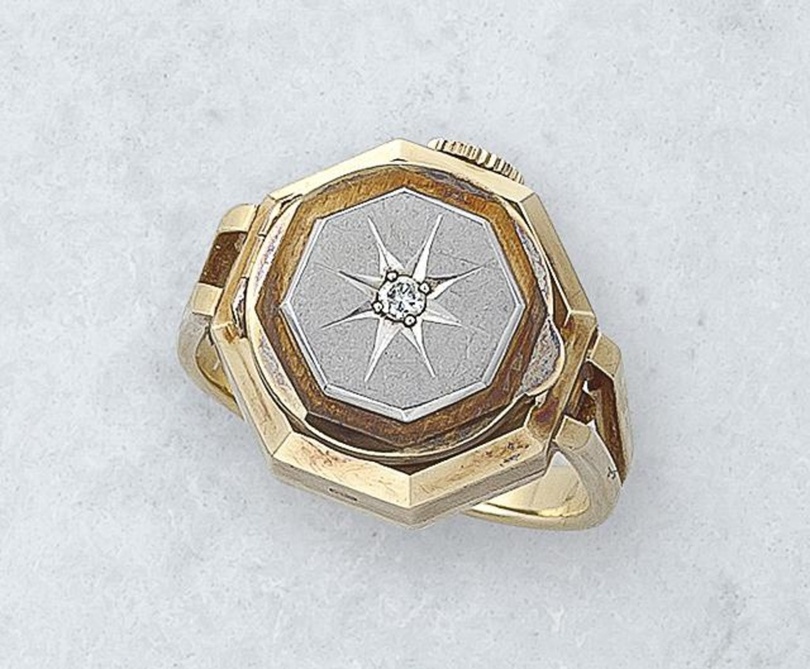 また、ロット番号927には、18カラットのゴールド製の指輪型の時計も登場する。この時計は直径15ミリで、蓋を開けると文字盤が現れる。