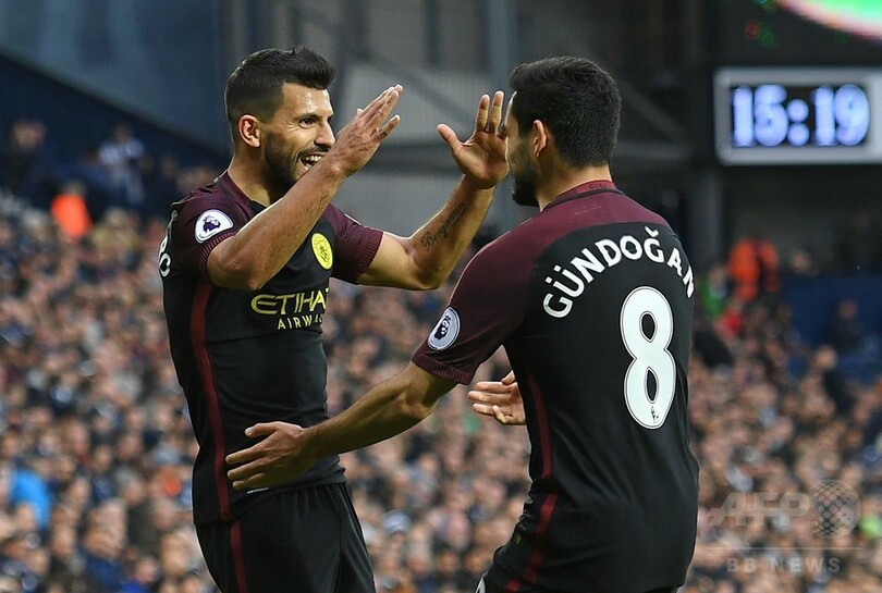 【10月30日 AFP】16-17イングランド・プレミアリーグは29日、第10節が行われ、セルヒオ・アグエロ(Sergio Aguero)とイルカイ・ギュンドアン(Ilkay Gundogan)がそれぞれ2得点を記録したマンチェスター・シティ(Manchester City)が、ウェスト・ブロムウィッチ・アルビオン(West Bromwich Albion、WBA)に4-0で快勝して首位の座を守った。