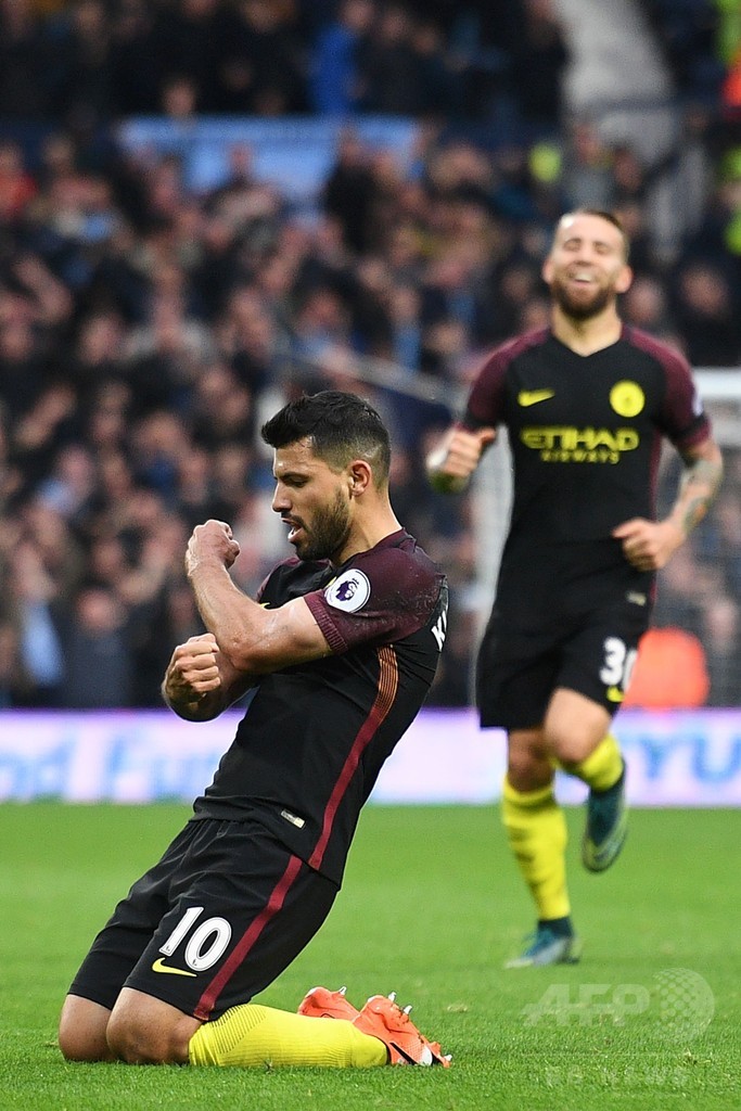 【10月30日 AFP】16-17イングランド・プレミアリーグは29日、第10節が行われ、セルヒオ・アグエロ(Sergio Aguero)とイルカイ・ギュンドアン(Ilkay Gundogan)がそれぞれ2得点を記録したマンチェスター・シティ(Manchester City)が、ウェスト・ブロムウィッチ・アルビオン(West Bromwich Albion、WBA)に4-0で快勝して首位の座を守った。