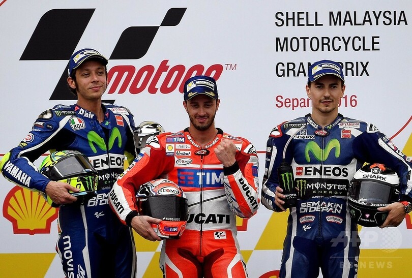 【10月31日 AFP】世界ロードレース選手権(WGP 2016)第17戦のマレーシアGPは30日、MotoGPクラスの決勝が行われ、ドゥカティ(Ducati Team)のアンドレア・ドビツィオーゾ(Andrea Dovizioso、イタリア)がモビスター・ヤマハ(Movistar Yamaha)のバレンティーノ・ロッシ(Valentino Rossi、イタリア)を終盤に引き離し、7年ぶりとなる優勝を飾った。