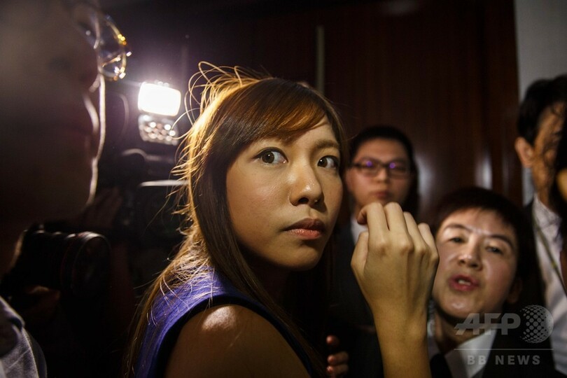 その後、梁氏も他の独立派議員らに両脇を守られながら宣誓を始めようとしたが、少なくとも5人の警備員に囲まれ、もみ合いとなった。結局警備員たちは梁氏を退出させることはできず、議会は延期された。(c)AFP