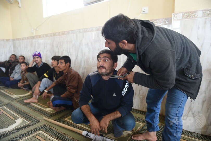 ISから解放されたモスル東端の村、バリカンで2年ぶりひげそり