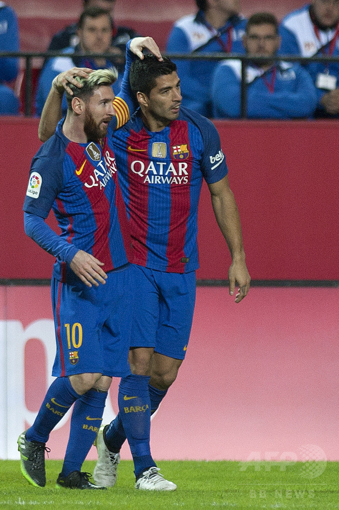 【11月7日 AFP】16-17スペイン1部リーグは6日、第11節の試合が行われ、FCバルセロナ(FC Barcelona)はリオネル・メッシ(Lionel Messi)のクラブ通算500得点目とルイス・スアレス(Luis Suarez)のゴールが決まり、セビージャFC(Sevilla FC)との上位対決を2-1で制した。