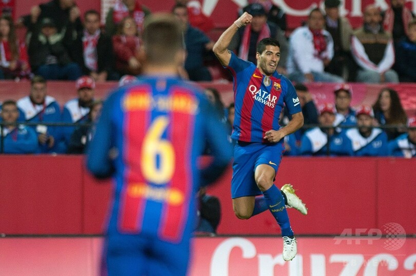 【11月7日 AFP】16-17スペイン1部リーグは6日、第11節の試合が行われ、FCバルセロナ(FC Barcelona)はリオネル・メッシ(Lionel Messi)のクラブ通算500得点目とルイス・スアレス(Luis Suarez)のゴールが決まり、セビージャFC(Sevilla FC)との上位対決を2-1で制した。