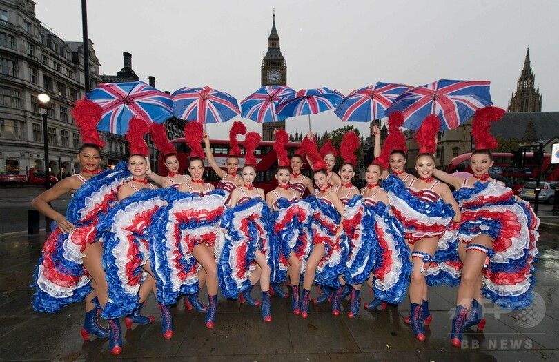 【11月7日 AFP】仏パリ(Paris)の老舗キャバレー「ムーランルージュ(Moulin Rouge)」の踊り子たちが4日、英ロンドン(London)でプロモーション活動を行い、ロンドンの象徴である「ビッグベン(Big Ben)」(英国会議事堂の時計台)や赤い電話ボックスを背景に華麗なダンスを披露した。(c)AFP