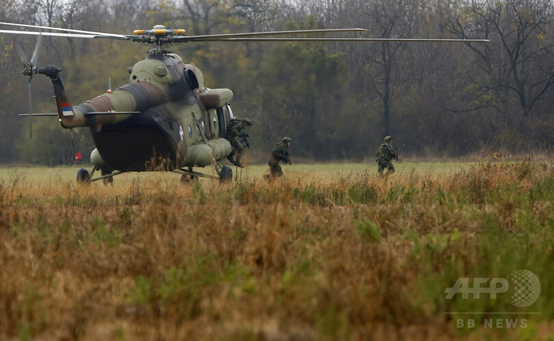 【11月8日 AFP】セルビアの首都ベオグラード(Belgrade)近郊のコビン(Kovin)で7日、ロシア、ベラルーシ、セルビアの3か国よる合同軍事演習「スラブの同胞(The Slavic Brotherhood)」が実施された。パラシュート部隊が降下訓練を行っていた最中には、空に鮮やかな虹が現れた。(c)AFP