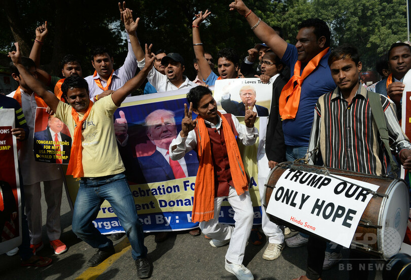 【11月9日 AFP】(写真追加)米大統領選挙は9日、共和党候補のドナルド・トランプ(Donald Trump)氏が民主党候補のヒラリー・クリントン(Hillary Clinton)氏に勝利し、全米各地をはじめ各国のトランプ氏支持者らが歓声を上げた。(c)AFP
