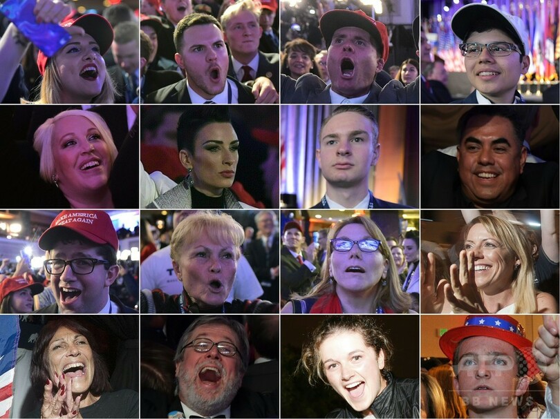 【11月9日 AFP】(写真追加)米大統領選挙は9日、共和党候補のドナルド・トランプ(Donald Trump)氏が民主党候補のヒラリー・クリントン(Hillary Clinton)氏に勝利し、全米各地をはじめ各国のトランプ氏支持者らが歓声を上げた。(c)AFP