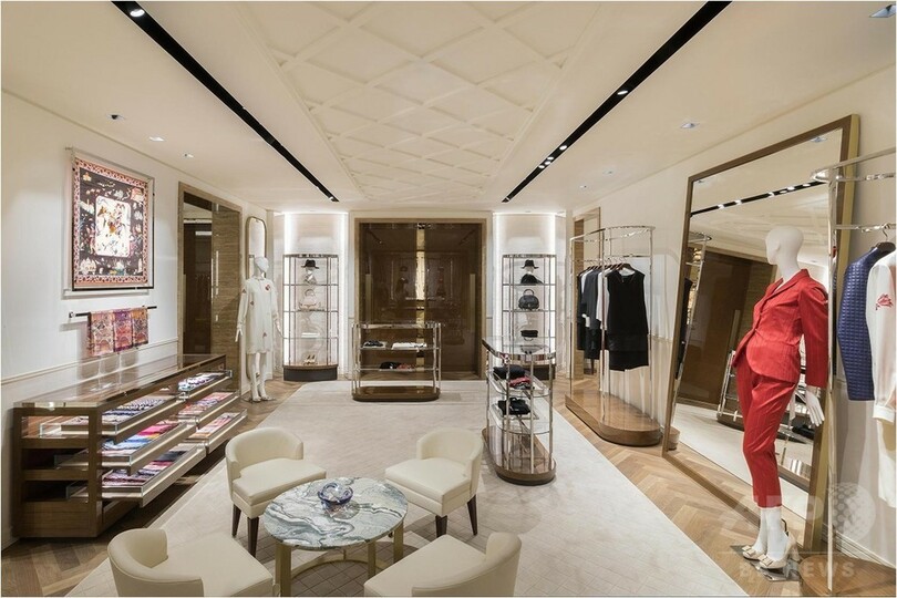 地下1階から地上2階の3フロア構成の「サルヴァトーレ フェラガモ銀座本店」は、メンズ・ウィメンズのレディ・トゥ・ウエアからバッグ、シューズまでフルコレクションを取りそろえる国内最大級のフラッグシップストア。リニューアルにともない、1930年代~50年代のイタリアン・インテリアをイメージしたくつろぎのある雰囲気の内装に。店舗のファサードには、ブランドアイコン「ヴァラ・リボン」の素材「グログラン」をモチーフにしたリブパネルを設置。さらに夕方には、ビル全体に取り付けられたLEDが点灯し、ロマンティックに銀座の街を彩る。