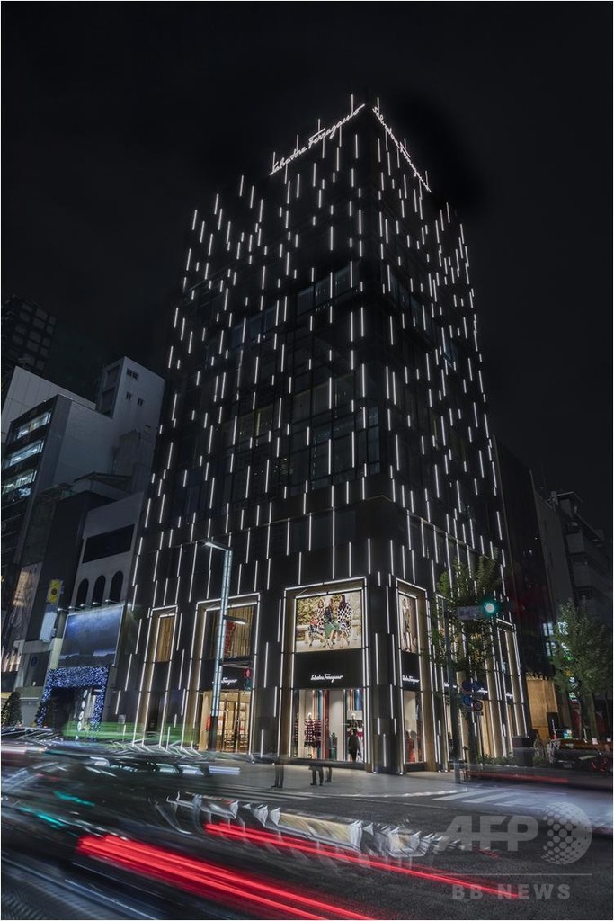 地下1階から地上2階の3フロア構成の「サルヴァトーレ フェラガモ銀座本店」は、メンズ・ウィメンズのレディ・トゥ・ウエアからバッグ、シューズまでフルコレクションを取りそろえる国内最大級のフラッグシップストア。リニューアルにともない、1930年代~50年代のイタリアン・インテリアをイメージしたくつろぎのある雰囲気の内装に。店舗のファサードには、ブランドアイコン「ヴァラ・リボン」の素材「グログラン」をモチーフにしたリブパネルを設置。さらに夕方には、ビル全体に取り付けられたLEDが点灯し、ロマンティックに銀座の街を彩る。