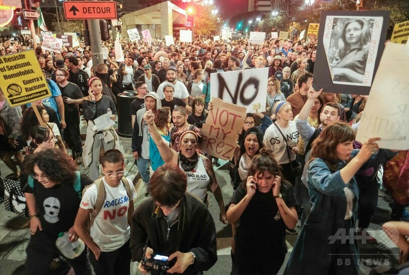 トランプ氏の勝利が確実となった直後、同州の州都サクラメント(Sacramento)やロサンゼルス(Los Angeles)、その他の都市では、人々が路上に出て抗議し、失望感をあらわにした。