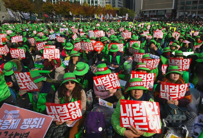 【11月12日 AFP】政治スキャンダルで窮地に立たされている韓国の朴槿恵(パク・クネ、Park Geun-Hye)大統領の辞任を求めて12日、首都ソウル(Seoul)で行われたデモは、同国の過去数十年間で最大規模のデモとなった。