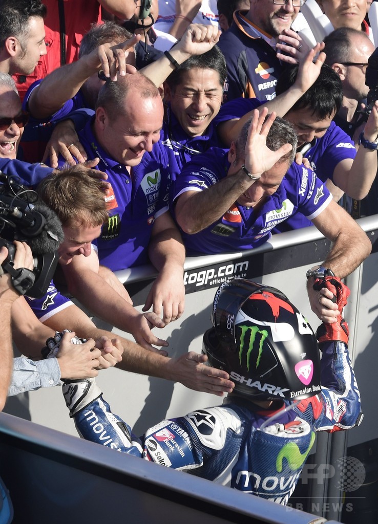【11月14日 AFP】世界ロードレース選手権(WGP 2016)第18戦のバレンシアGPは13日、MotoGPクラスの決勝が行われ、世界王者に3度輝いた実績を誇るホルヘ・ロレンソ(Jorge Lorenzo、スペイン)が9年間在籍したモビスター・ヤマハ(Movistar Yamaha)での最終戦を優勝で飾った。