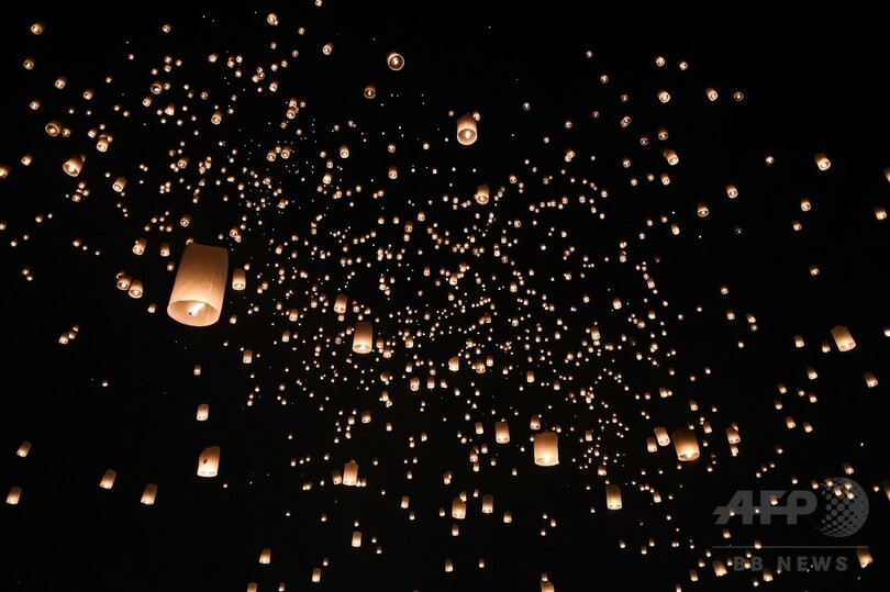 【11月15日 AFP】タイ北部の人気観光地チェンマイ(Chiang Mai)で14日、毎年恒例のランタン祭り「イーペン祭り(Yi Peng)」が行われ、火をともした多数のランタンが空に放たれた。