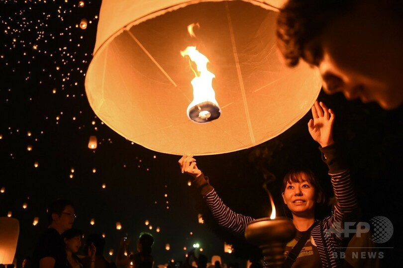 【11月15日 AFP】タイ北部の人気観光地チェンマイ(Chiang Mai)で14日、毎年恒例のランタン祭り「イーペン祭り(Yi Peng)」が行われ、火をともした多数のランタンが空に放たれた。