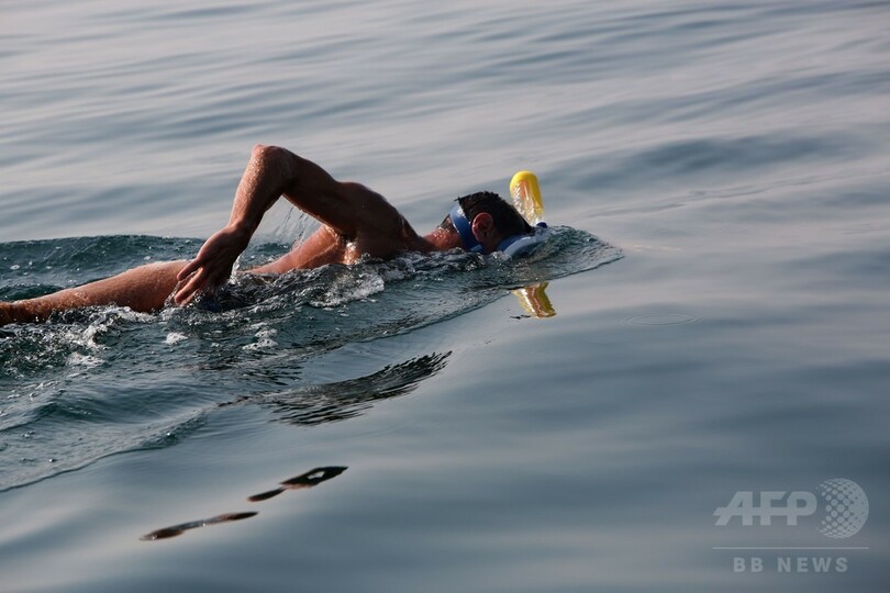 【11月16日 AFP】アラビア半島にある死海(Dead Sea)で15日、ヨルダンからイスラエルまでを泳いで横断するイベントが初めて開催され、塩分濃度の高い水の中を参加者たちが7時間かけて泳ぎ切った。