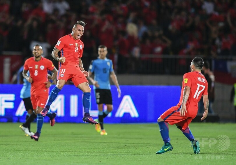 【11月16日 AFP】2018年サッカーW杯ロシア大会(2018 World Cup)南米予選は15日、各地で行われ、チリがアレクシス・サンチェス(Alexis Sanchez)の2ゴールの活躍などでウルグアイを3-1で下した。