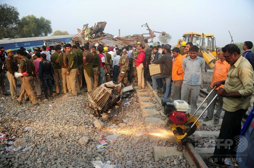 【11月21日 AFP】インド北部ウッタルプラデシュ(Uttar Pradesh)州カンプール(Kanpur)付近で20日早朝に起きた急行列車の脱線事故で、地元警察によると死者は同日夜までに少なくとも120人に達した。現場では大破した車両の中に生存者がいないか、救助隊員が懸命の捜索を続けている。