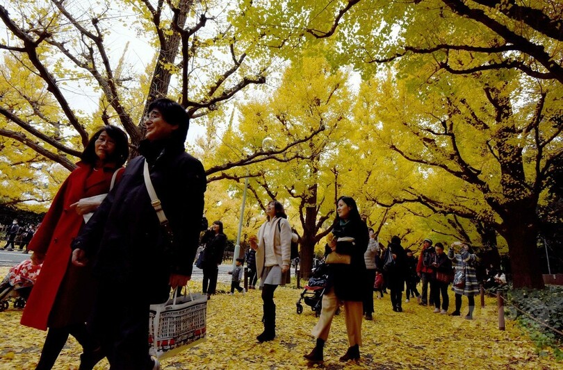ニュース ライフ 色づいたイチョウ並木が「黄金のトンネル」に、都内 2016年11月24日 10:13 発信地:東京 [ アジア・オセアニア 東京 ] このニュースをシェア ‹ › ❮ 2/3 ❯ 都内で黄色に色づいたイチョウ並木を歩く人々(2016年11月23日撮影)。(c)AFP/TORU YAMANAKA 画像作成中 ! 【11月24日 AFP】紅葉の季節となった都内で23日、黄色に色づいたイチョウ並木が見頃を迎え、多くの人が「黄金のトンネル」を散策する姿が見られた。(c)AFP ライフ 一覧へ> メディア・報道関係・法人の方向け 写真・動画 購入のお問合せ>