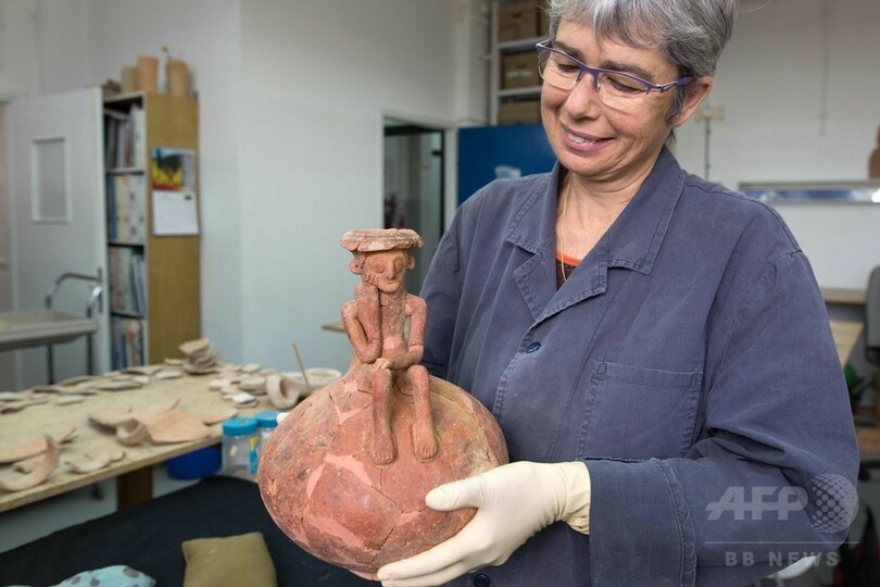 IAAの発掘監督者はAFPの取材に対し、「こうしためずらしい陶製の器が発見されたのは初めて。墓の中から見つかったということは、そこに重要な人物が埋葬されていることを示唆する可能性もある」と語った。また、像の性別は男性である可能性が高いという。(c)AFP