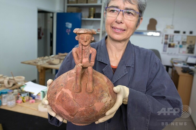 IAAの発掘監督者はAFPの取材に対し、「こうしためずらしい陶製の器が発見されたのは初めて。墓の中から見つかったということは、そこに重要な人物が埋葬されていることを示唆する可能性もある」と語った。また、像の性別は男性である可能性が高いという。(c)AFP