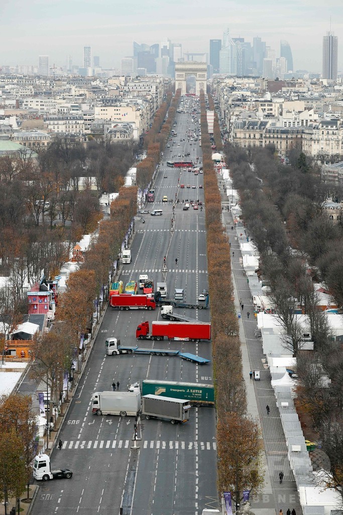 およそ60台のトラックが遮断したのは、セーヌ(Seine)川にかかる橋とシャンゼリゼ(Champs-Elysees)通りとを結ぶコンコルド広場周辺の道。朝の通勤時間帯の交通に影響が出た。