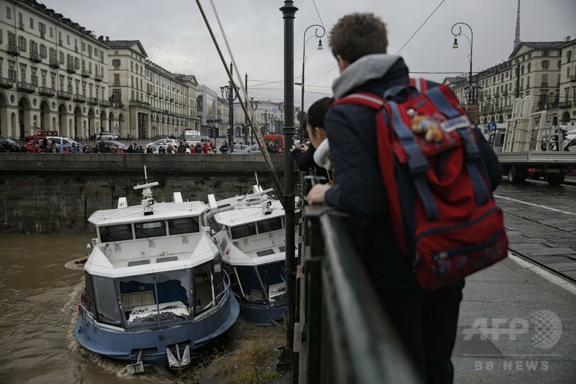 【11月26日 AFP】イタリア北部で25日、豪雨の影響で洪水が発生し、トリノ(Turin)付近では高齢男性1人が増水した川に流され、死亡したとみられている。