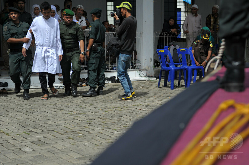 【11月28日 AFP】インドネシア・アチェ(Aceh)州の州都バンダアチェ(Banda Aceh)で28日、女性2人と男性3人に対する公開むち打ち刑が執行された。