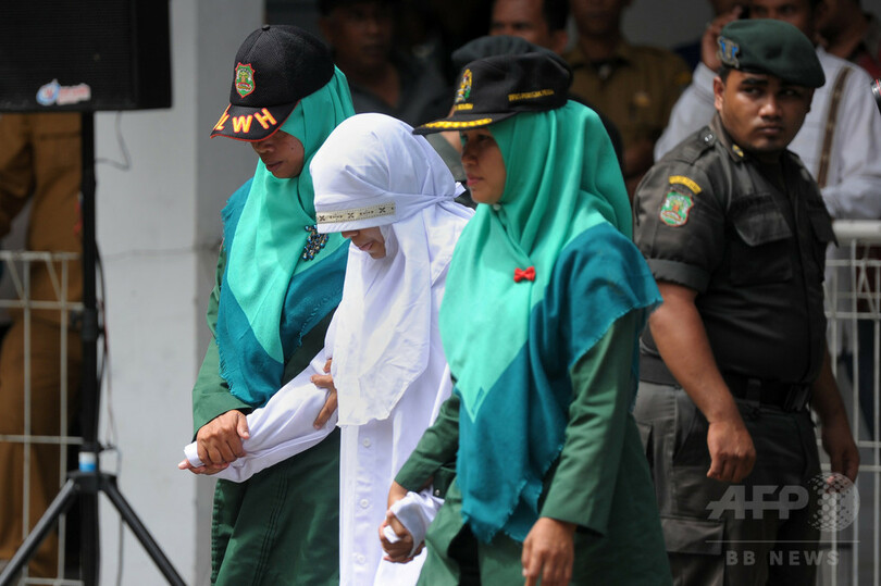 【11月28日 AFP】インドネシア・アチェ(Aceh)州の州都バンダアチェ(Banda Aceh)で28日、女性2人と男性3人に対する公開むち打ち刑が執行された。